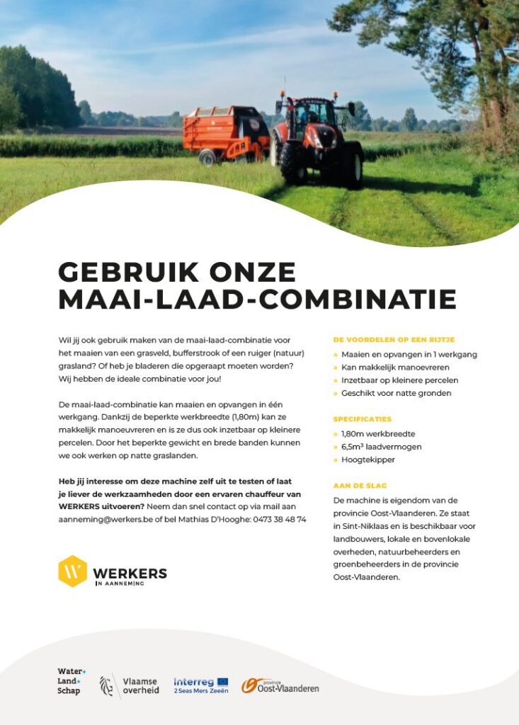 De machine is eigendom van de Provincie Oost-Vlaanderen. Zij hebben deze maai-laadwagen aangekocht voor gemeenschappelijk gebruik bij extensief landschapsbeheer in kader van het project Waterlandschap ‘Barbierbeek verbindt’. De provincie draagt het gebruik door middel van een bruikleenovereenkomst over aan Werkers in aanneming CVBA.